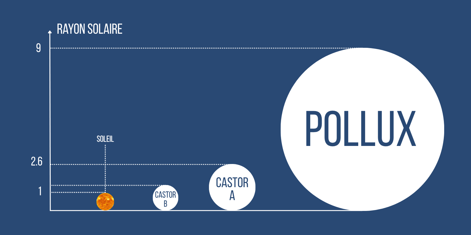Taille comparative du Soleil avec Castor et Pollux